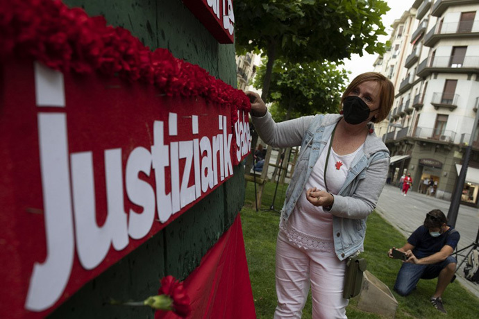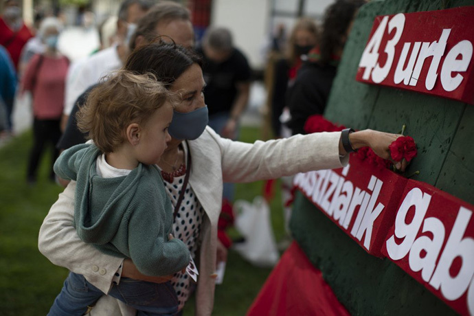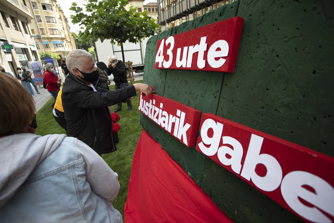 En la concentración, apoyada este año por numerosos colectivos sociales y memorialistas, también se ha ido completando con claveles rojos un mural en el que podía leerse "43 urte justiziarik gabe" (43 años sin justicia) y se han depositado ramos de flores junto a la estela.