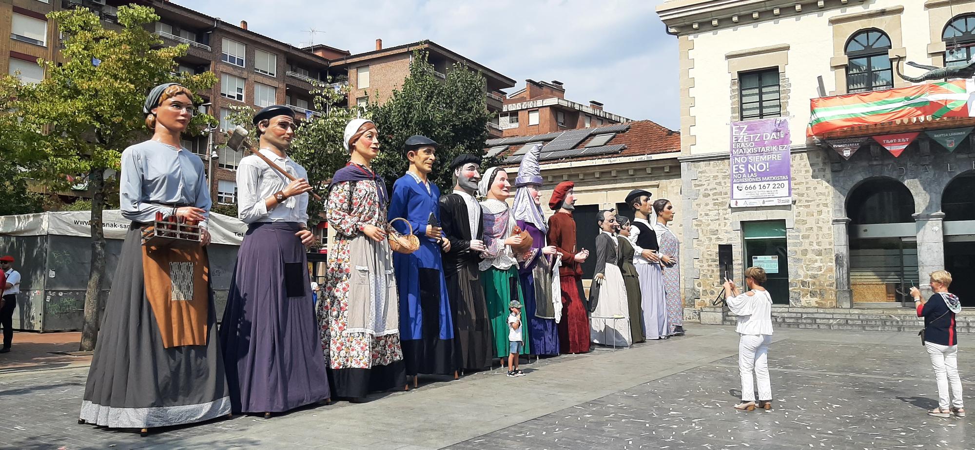 “Tenemos cuatro regios y ancestrales gigantes de Miranda de Ebro, y otros ocho de Barakaldo de los que cuatro son de su Ayuntamiento, pero el resto: los aldeanos y los señores de Retuerto, son de la comparsa Laguntasuna, aunque han venido juntos”, aclaró Aitor Pascual, presidente de Bihotza Konpartsa.