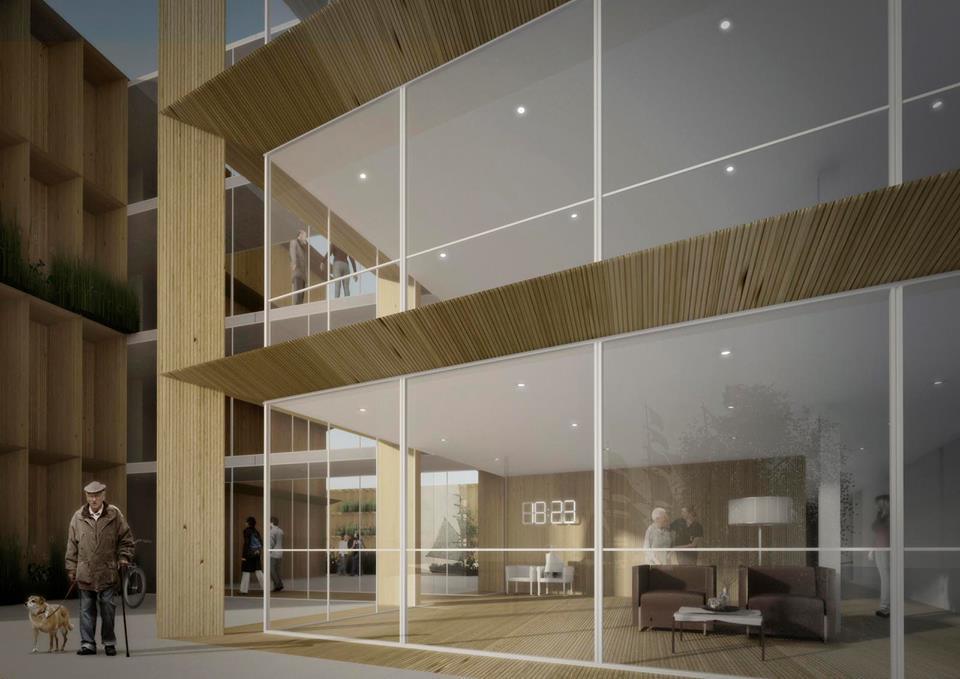 Fotomontaje de la nueva residencia de Pasaia Peña ha subrayado que la transformación del modelo "va mucho más allá" de la adecuación de los espacios físicos y la "integralidad" toma una relevancia especial. "El cambio contempla la atención, la calidad de los cuidados y la formación del personal", ha insistido. Y es que, según muestran todos los estudios, ocho de cada diez mayores quieren seguir viviendo en sus domicilios en los últimos años de su vida, por lo que la Diputación centrará los esfuerzos para que aquellos que no puedan permanecer en sus casas y se vean obligados a ingresar en residencias, continúen sintiéndose como en casa.