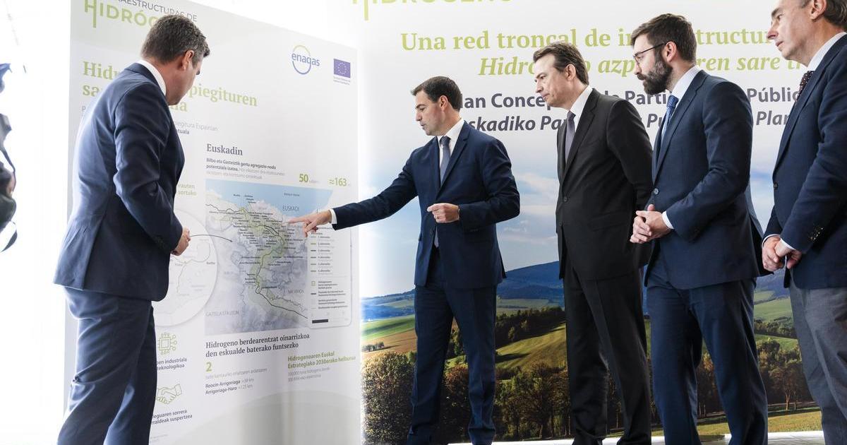 El Gobierno vasco y la empresa, reconocida por el Gobierno central como gestora provisional de la futura red española de hidrógeno, presentaron hoy en el Puerto de Bilbao -que aspira también a ejercer como uno de los núcleos de abastecimiento-, la estructura de este tejido, que discurrirá a través de un total de 50 municipios vascos en los tres territorios.