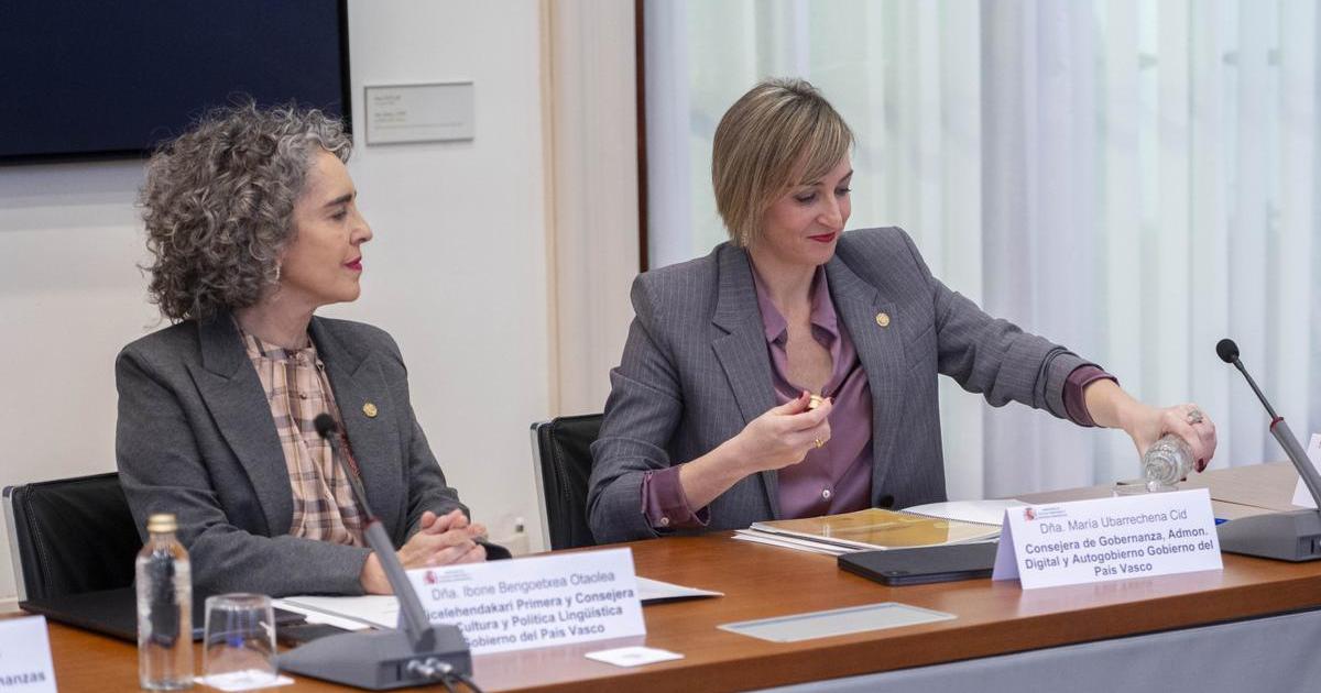 La portavoz del Gobierno vasco, María Ubarretxena, y la consejera de Política Lingüística y vicelehendakari 1ª, Ibone Bengoetxea, durante un acto político / Alberto Ortega / Europa Press