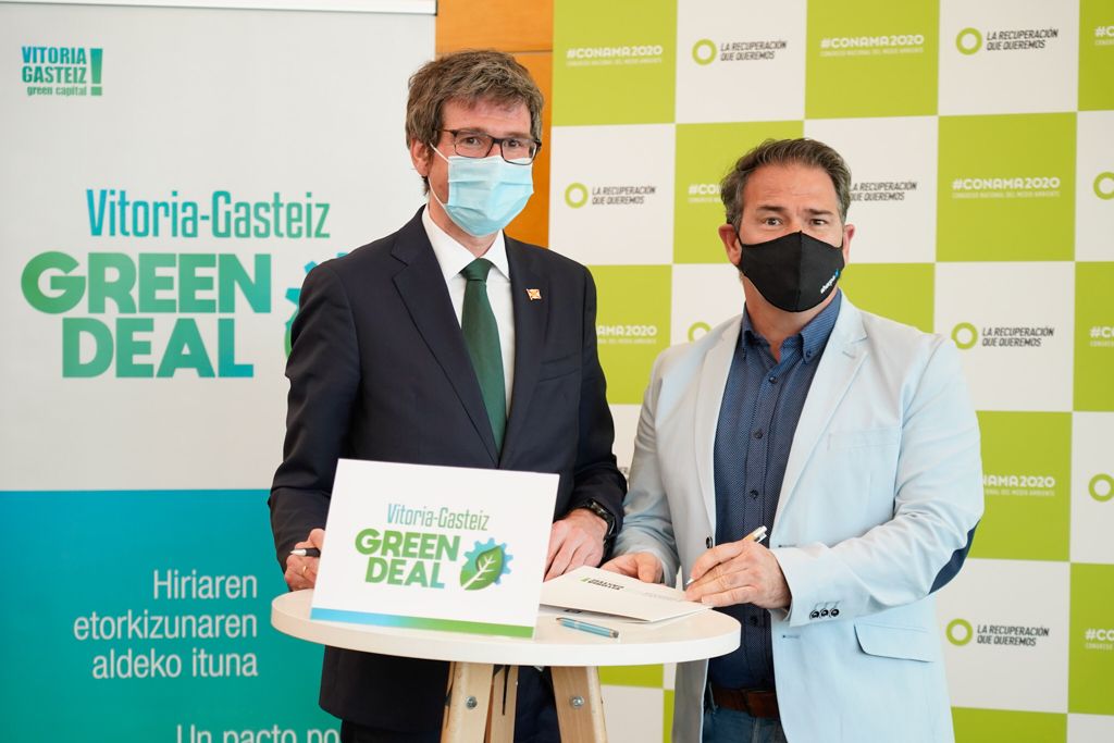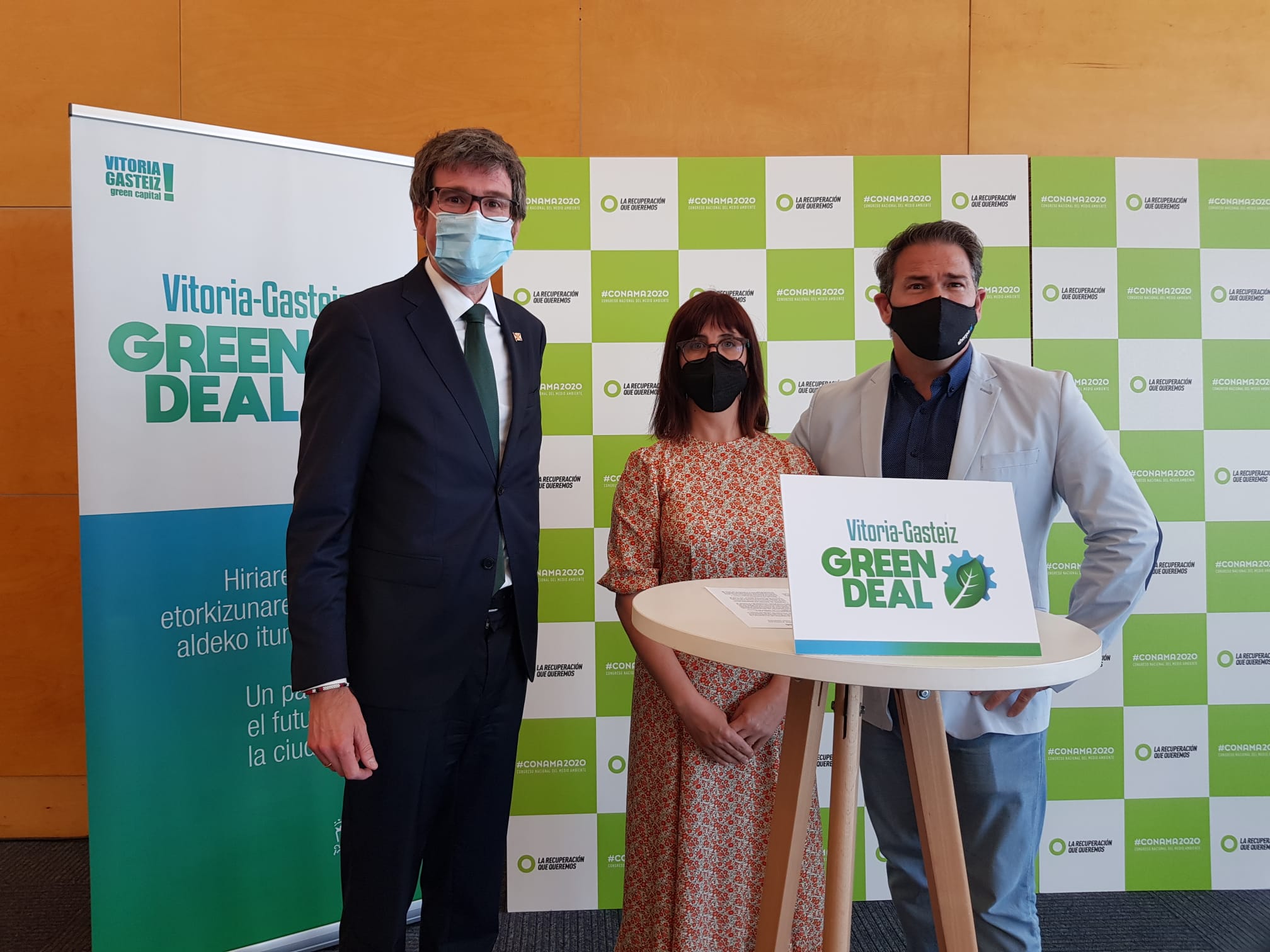 Vitoria-Gasteiz presume de investigación, talento y compromiso verde en el Congreso Nacional de Medio Ambiente. Gorka Urtaran ha compartido con los alcaldes de Madrid, Zaragoza y Valladolid, el gran pacto 'green deal' con el que la capital alavesa "ya transita de la ciudad verde, de la green capital a la economía verde". Subraya el primer edil que "si Vitoria ha llegado hasta aquí es gracias al trabajo de los medios" y que está satisfecho porque los principios de la sostenibilidad sean prioritarios en la agenda de la capital.