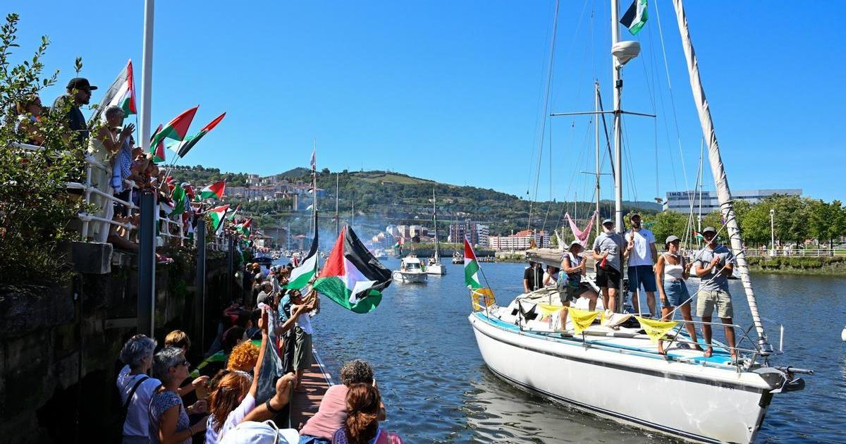 Pudo resultar solo una gota de empatía en el océano de la incomprensión. Pero a su vez una llamarada de esperanza. Una cadena humana configurada desde el ayuntamiento de Bilbao confluyó este sábado con la marcha formada por más de un centenar de embarcaciones que partió desde el puerto de Santurtzi para discurrir sobre la Ría y alcanzar el Museo Marítimo de la capital vizcaina. El corazón y los cinco sentidos, dibujando una escenografía conmovedora, estaban con Palestina.