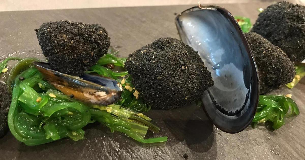 También merecen mención las croquetas de mejillón y algas de mi amigo Egoiz Zamora, el que fuera chef ejecutivo de Bokado y jefe de cocina de Ramón Freixa.