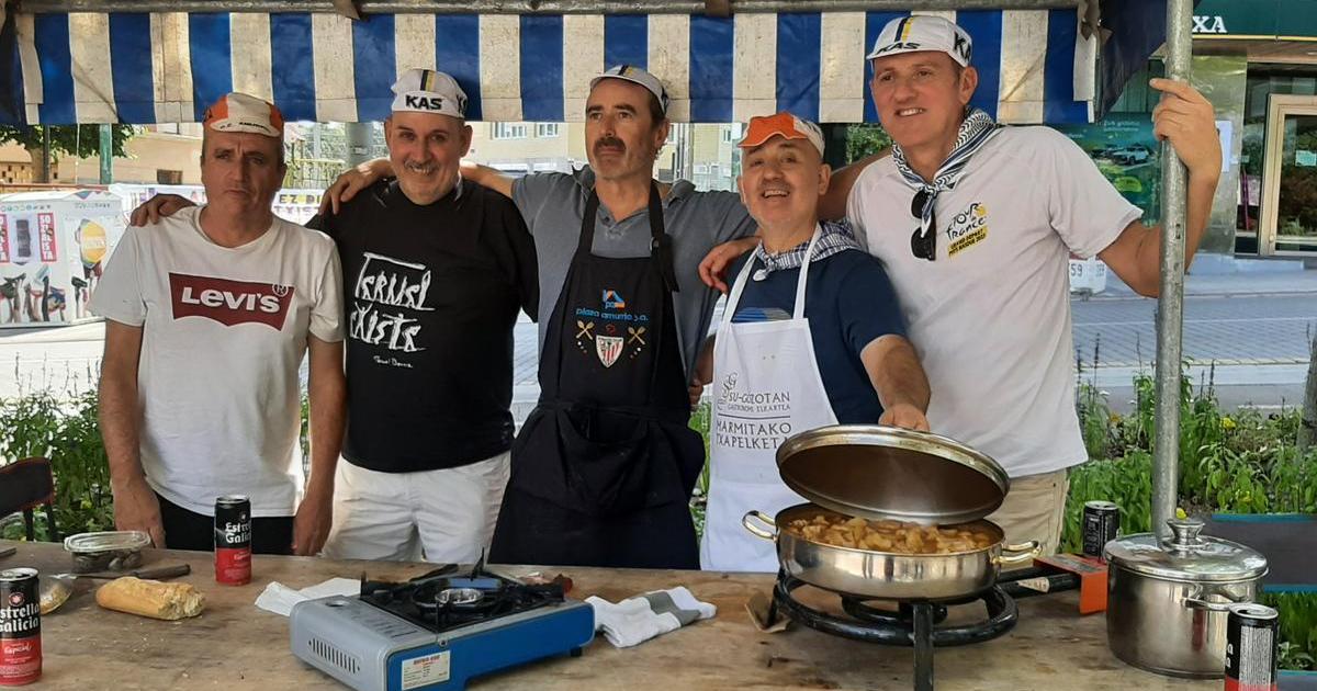 Hablamos de Los Amigos de San Antón que, ante todo, eso es lo que son: una cuadrilla de amigos, a quienes les gusta la chufla como al que más. Quizá ahí se encuentre el secreto de porqué han logrado que una cita singular y arraigada a la tradición local desde allá por 1969, se haya convertido en un mercado invernal referente en Euskadi, del que no hay que olvidar su componente solidario. La integran en torno a 20 personas, y su presidente es Cosme Ibarrola, a quien nos le encontramos -junto a Imanol Arberas, Jon Pinedo, Ignacio Arregi y Joseba Rodríguez- este pasado domingo en la plaza Juan Urrutia de Amurrio, compitiendo en el XIV certamen de marmitako de Su Gozotan. Quedaron los últimos pero, como suele decirse, lo importante es participar, y ellos de eso saben un rato.