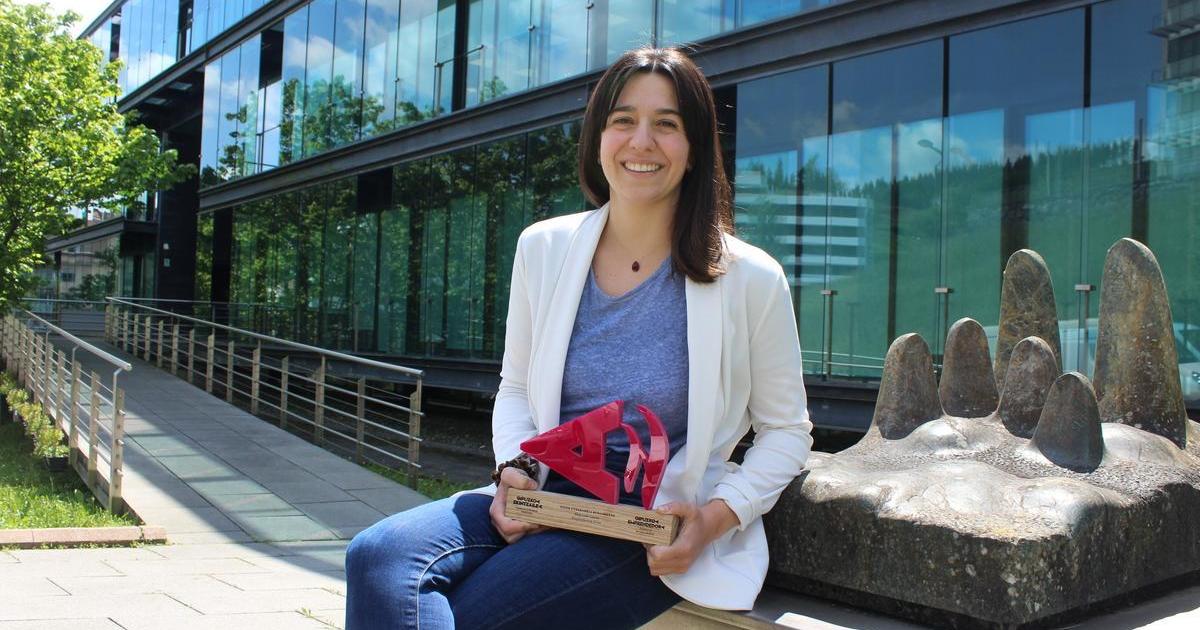 La emprendedora arrasatearra recogiendo el premio en el acto que tuvo lugar el pasado 8 de mayo.