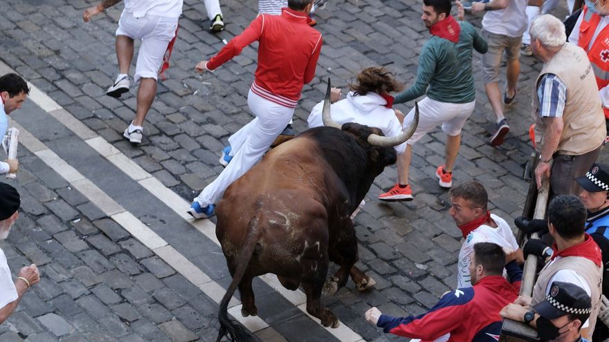 Tonadillero tenía intención de embestir a todo lo que se movía a su alrededor y lo ha conseguido a la entrada de la Plaza Consistorial, donde ha arrollado a una mujer. Según el parte médico facilitado por el Hospital Universitario de Navarra (HUN), la mujer se encuentra "estable" tras sufrir la fractura de su codo derecho.