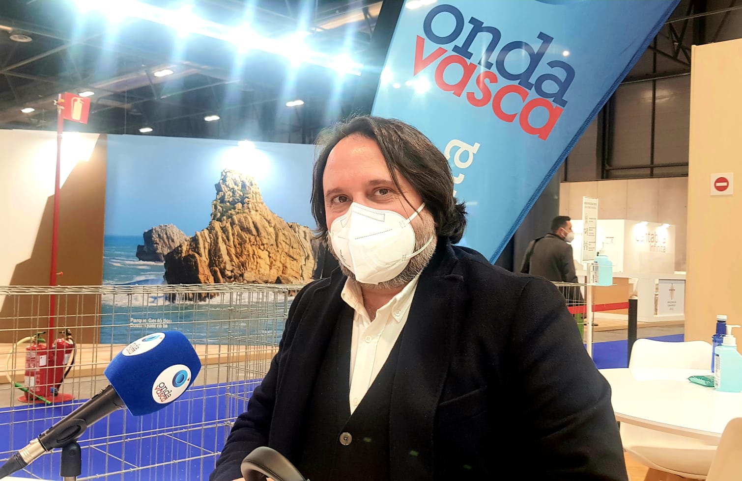 Ricardo Campuzano, Director del Hotel Puente Bizkaia de Portugalete visita el stand de Onda Vasca en Fitur y recuerda que el hotel ha sido heredero de la historia de Portugalete ejerciendo la hospitalidad y el compromiso con la vida social de la villa.