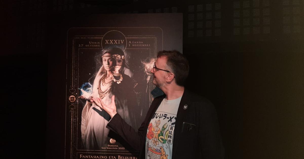 Josemi Beltrán, director de la Semana de Cine Fantástico y de Terror de Donostia, con el cartel de este año