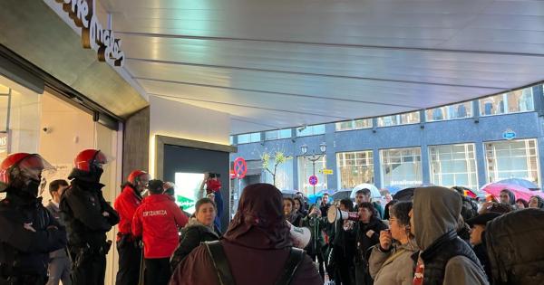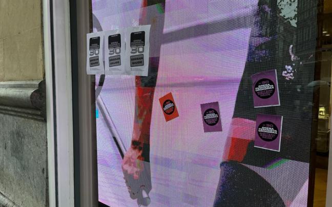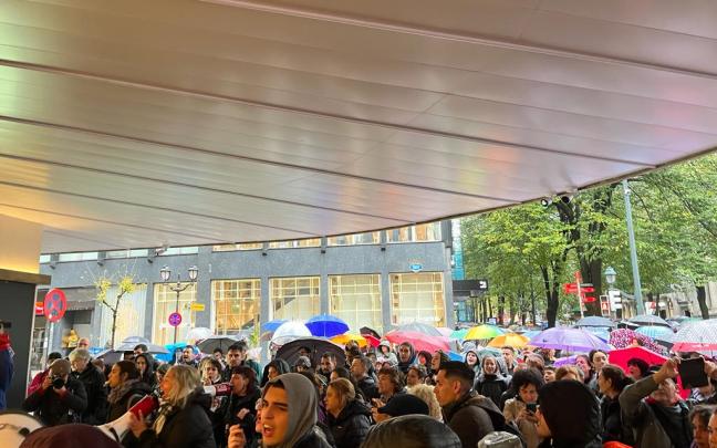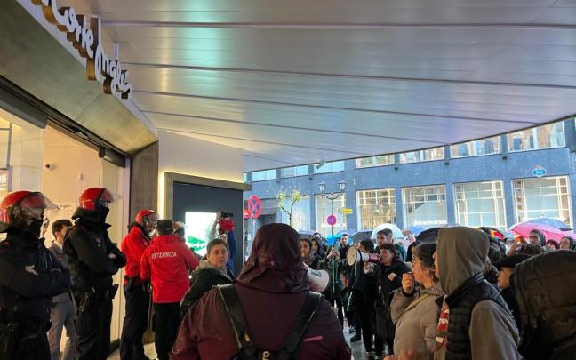 Las cuatro columnas de manifestantes se han unido en la Gran Vía, y al paso de las piquetes los comercios como Mango o El Corte Inglés con fuerte presencia de la ertzaintza, han bajado las persianas para evitar incidentes con las manifestantes.