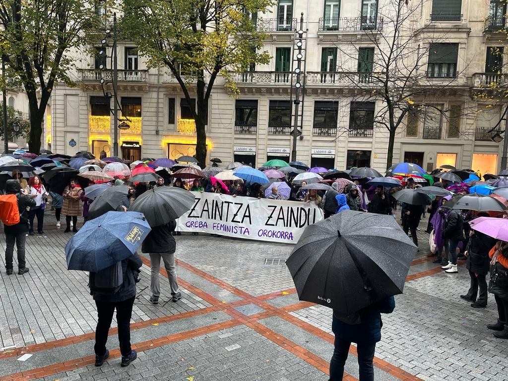 La portavoz foral, Leixuri Arrizabalaga, ha confirmado que el 6.5% de la plantilla de la Diputación foral, de la que excluyen las subcontratas, ha secundado la huelga. Según ha explicado, el Gobierno foral no secunda la huelga porque creen que se trata, más que de una huelga feminista, de una huelga de condiciones en el sector de los cuidados y de las personas cuidadoras o que se ocupan de las tareas de cuidados. Las mujeres dedican tres veces más tiempo que los hombres a las mismas. Reconocemos que venimos de un modelo que atribuye la responsabilidad de los cuidados a las mujeres, muy injusto, que reproduce y ahonda la desigualdad, y creemos y apostamos por un modelo público comunitario de cuidados. Hemos decidido no secundarla y respetamos a las que ejercen este derecho, pero creemos que no es el camino para que se dé esta transformación tan necesaria. Nuestra postura es seguir trabajando por unos servicios públicos y un sistema que ponga los cuidados en el centro y estamos convencidas que el camino para conseguirlo no es haciendo huelga. El camino es trabajando día a día desde las instituciones y otros sectores, de manera coordinada y buscando el consenso, porque es un reto de país. Además, hay que recordar -añadía Arrizabalaga que muchas mujeres no se pueden permitir el hacer huelga hoy y prescindir de su salario y que luego se les deje fuera de la convocatoria."