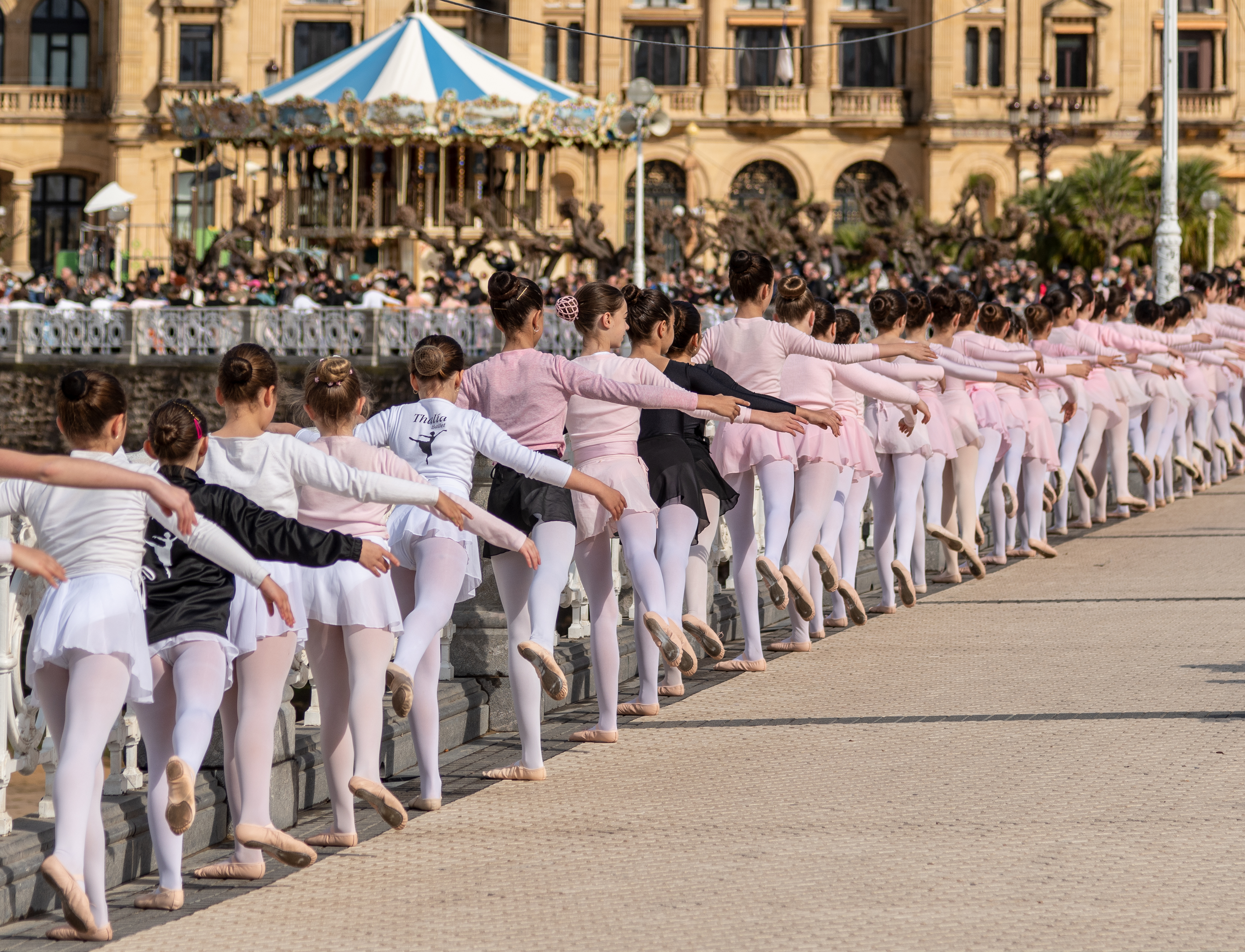 XXVI BARANDILLA DE LA CONCHA el domingo 21 de abril de 11.00 a 11:30 la Barandilla de Txikis ubicada desde el club Náutico hasta el Café de la Concha; de 11:50 a 12:20 la Barandilla de nivel intermedio también desde el Club Náutico hasta el Café de la Concha; y finalmente de 12:45 a 13:30 la Barandilla de Mayores que se distribuirá desde el club Náutico hasta el túnel del Antiguo. En total participan 1524 alumnas y alumnos pertenecientes a 26 escuelas de danza ubicadas en diferentes municipios de Gipuzkoa (Andoain, Astigarraga, Donostia, Hondarribia, Irún, Pasai Antxo, Rentería y Tolosa) y Bizkaia (Ondarroa y Lekeitio).