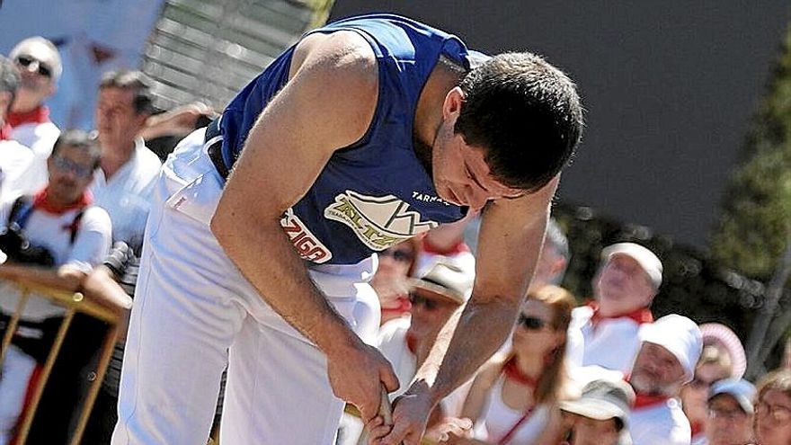 Iker Vicente es humano. Y la mejor prueba es que al aizkolari de Otsagabia se le escapó ayer en la plaza de los Fueros de Pamplona, escenario de la tercera jornada de los festivales de herri kirolak de San Fermín, el título del Campeonato Navarro de aizkora por parejas. La victoria se la apuntaron Joxean Etxeberria y Eneko Saralegi, que aventajaron al gran campeón y a su compañero de faena ayer, Asier Pellejero, en casi dos minutos. Al tercer escalón del podio subieron los otros dos protagonistas de la competición, Jon Rekondo y Julen Olano, que tardaron exactamente tres minutos más que los ganadores de la prueba en completar una tarea consistente en el corte de 12 troncos (seis kanaerdikos y otros seis de 60 pulgadas).