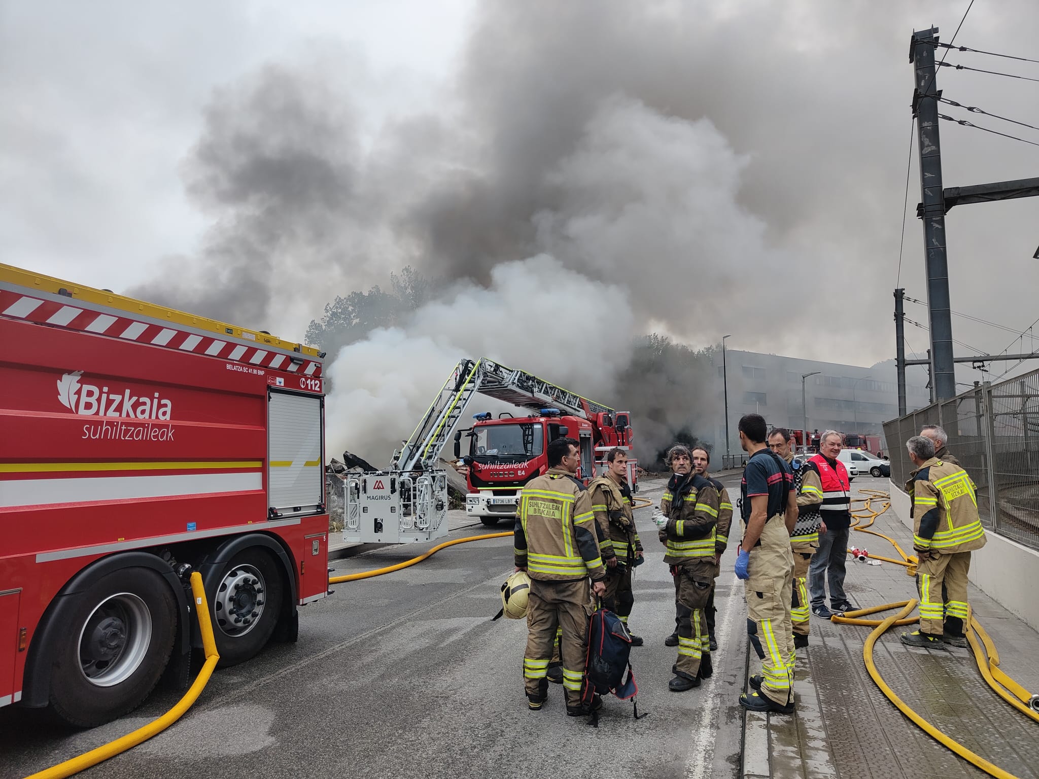 A esta hora, siguen trabajando para extinguir el fuego, 4 parques de Bomberos, con efectivos de Basauri, Iurreta, y dos cisternas de Derio y de Zalla.