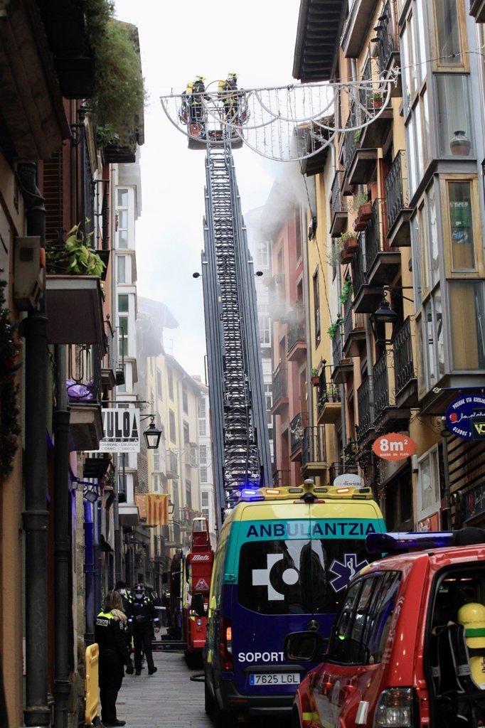 Una humareda de importante tamaño es visible en esta vía del Casco Viejo vitoriano, donde se desplazaron unidades de Bomberos, Policía Local y emergencias sanitarias.