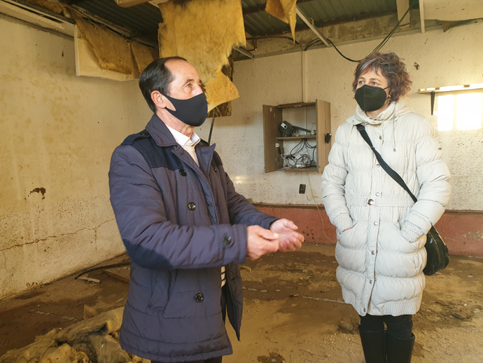La consejera de Cultura y Deporte del Gobierno de Navarra, Rebeca Esnaola, acompañada por el director gerente del IND, Miguel Pozueta, acudió el pasado jueves 13 de enero a Burlada para conocer las consecuencias de las inundaciones.