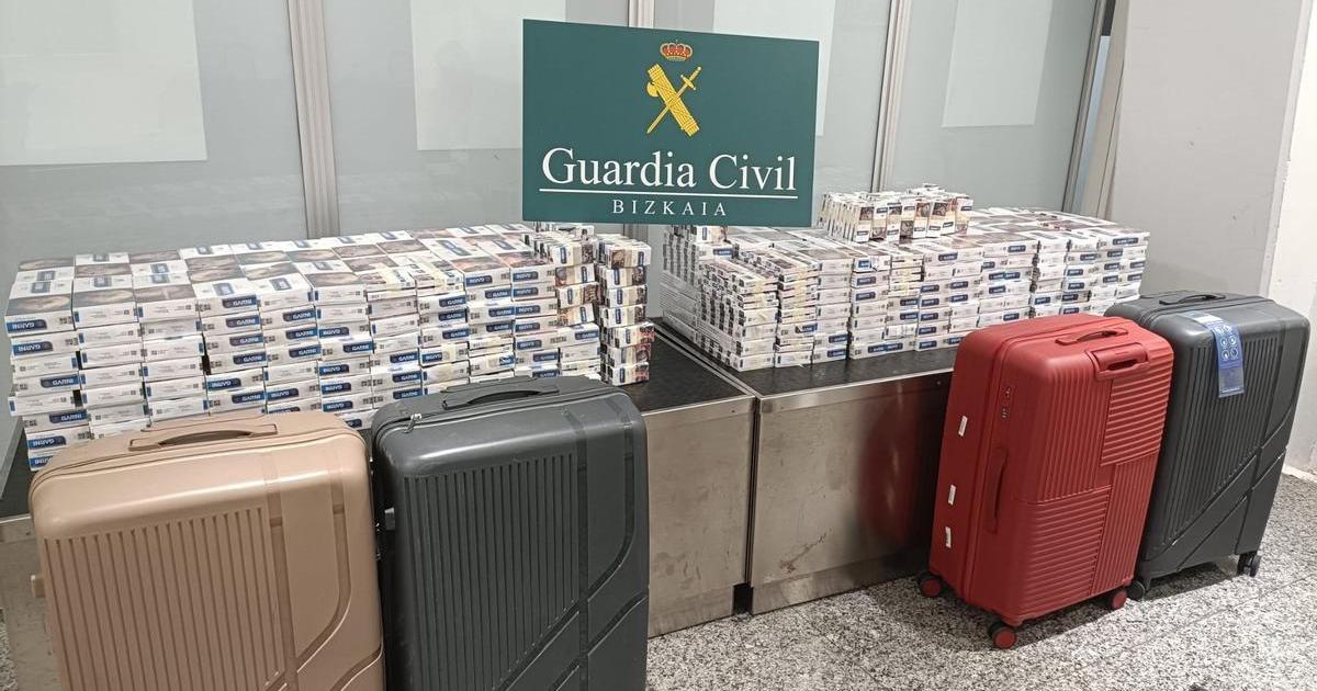 Guardias civiles de la Sección Fiscal y de Fronteras del aeropuerto de Bilbao junto con funcionarios del Servicio de Vigilancia Aduanera de la Agencia Tributaria descubrieron en una inspección rutinaria que cada una de las pasajeras portaba 1.900 cajetillas de tabaco sin declarar en maletas de grandes dimensiones.