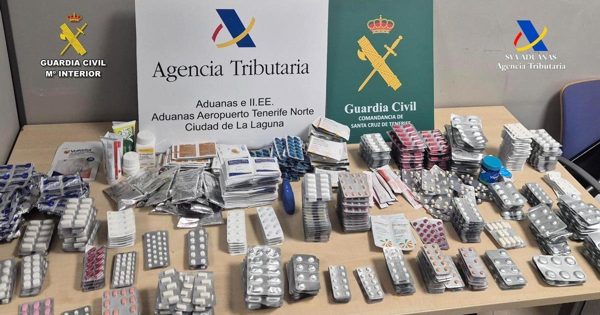 Funcionarios de la Aduana y de Vigilancia Aduanera de la Agencia Tributaria, junto con agentes de la Guardia Civil de la Sección Fiscal del Aeropuerto Tenerife Norte, han intervenido unos 70.000 medicamentos en 20 maletas facturadas.