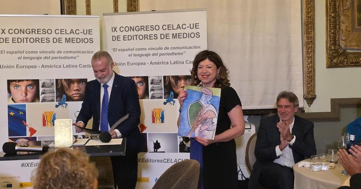 Irene Lanzaco, directora general de la Asociación de Medios de Información (AMI), ha sido distinguida con el premio EditoRed en reconocimiento a su trayectoria profesional en defensa del periodismo, en el marco del encuentro internacional de editores promovido por esta organización, que reúne a medios de Europa y América Latina .