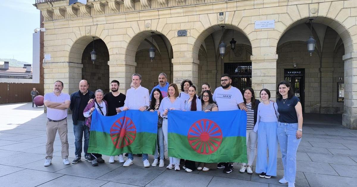 La bandera del pueblo gitano ondea desde este mediodía en el Ayuntamiento de Irun. Miembros de las asociaciones gitanas de la localidad, Kera Elkartea y Kale Dor Kayiko, han izado la bandera en el consistorio con motivo del Día Internacional del Pueblo Gitano, que se celebra desde 1971 con el primer Congreso Mundial Gitano en Londres, y que desde hace años también se conmemora en la localidad fronteriza, sumándose de esta manera a esta celebración.
