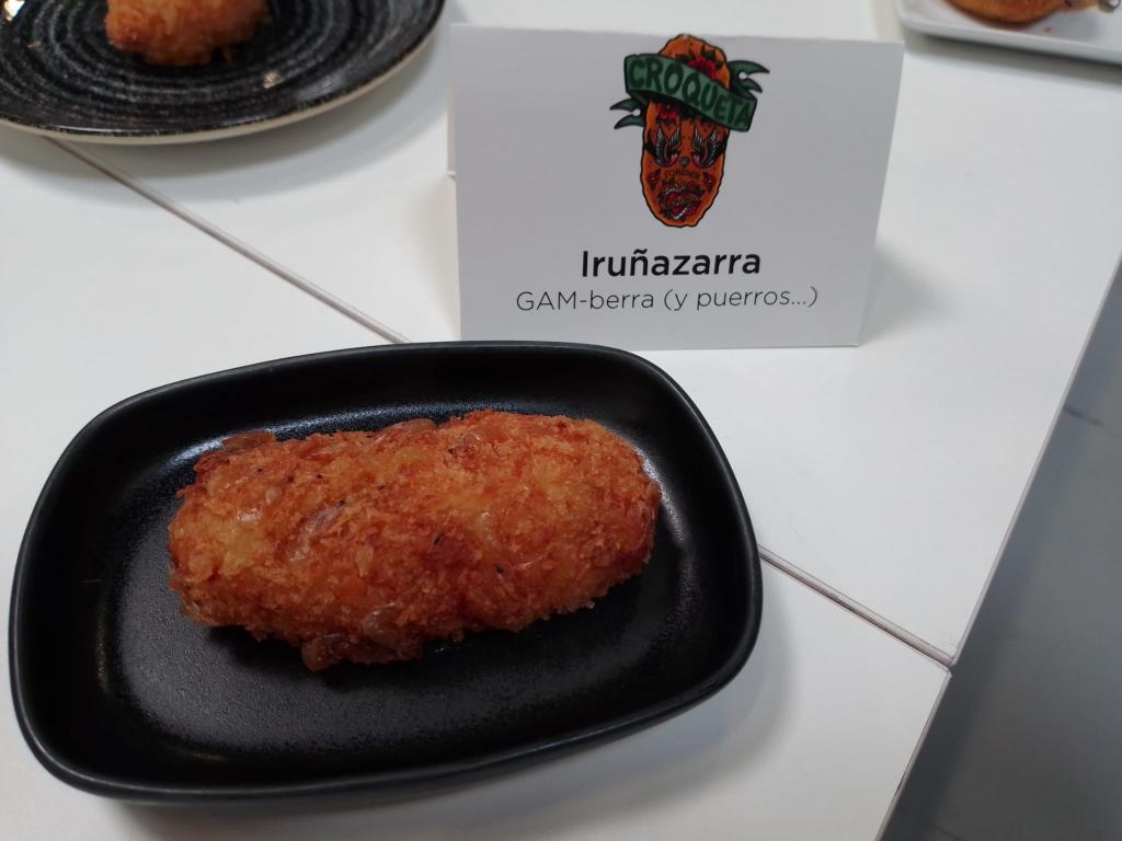 La gam-berra del Iruñazarra es la mejor croqueta de Navarra. En boca del jurado por el equilibro de textura y sabores y la destreza al trabajo un ingrediente tan humilde como el puerro. Según el chef protagonista del invento, Gorka Aguinaga, porque es fina, melosa y delicada. "En frío se comporta muy bien y en caliente te la puedes beber con una pajita. Tiene la bechamel súper ligera de una croqueta y acabas como si te comieras una tortita de camarón. Ahí está el juego y la historia", explica.