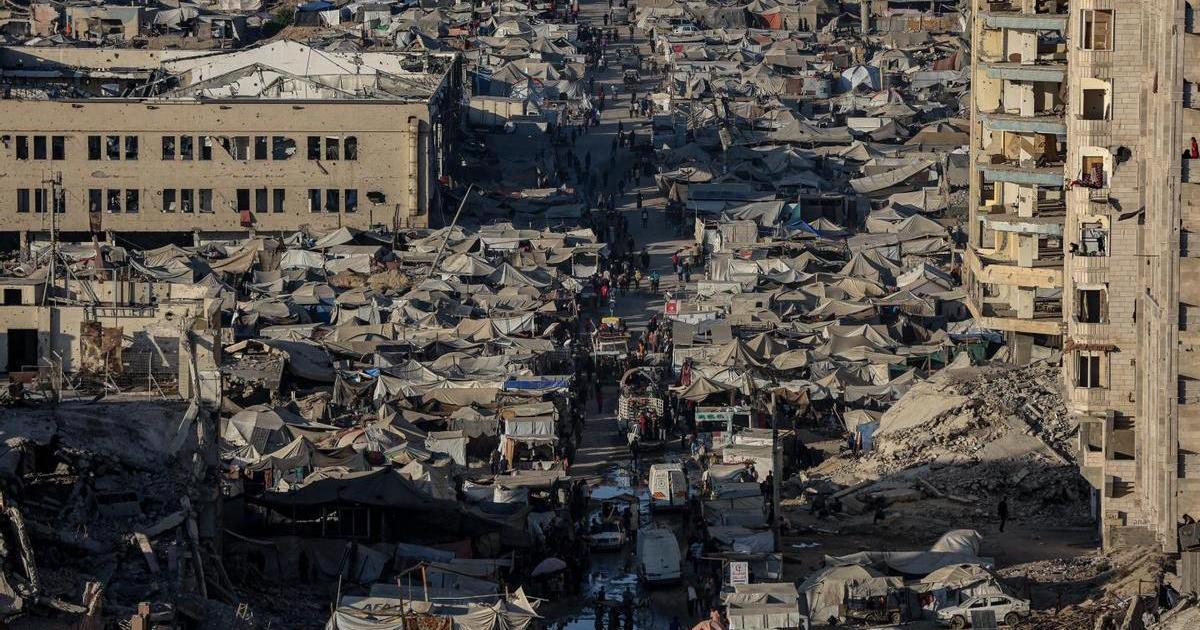 Tiendas de desplazados en la destruida Ciudad de Gaza.