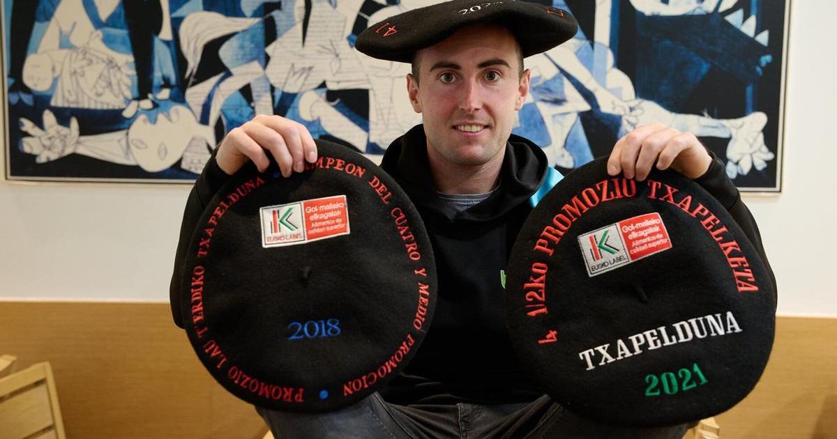 Joanes Bakaikoa posa con sus tres txapelas del Cuatro y Medio Serie B.