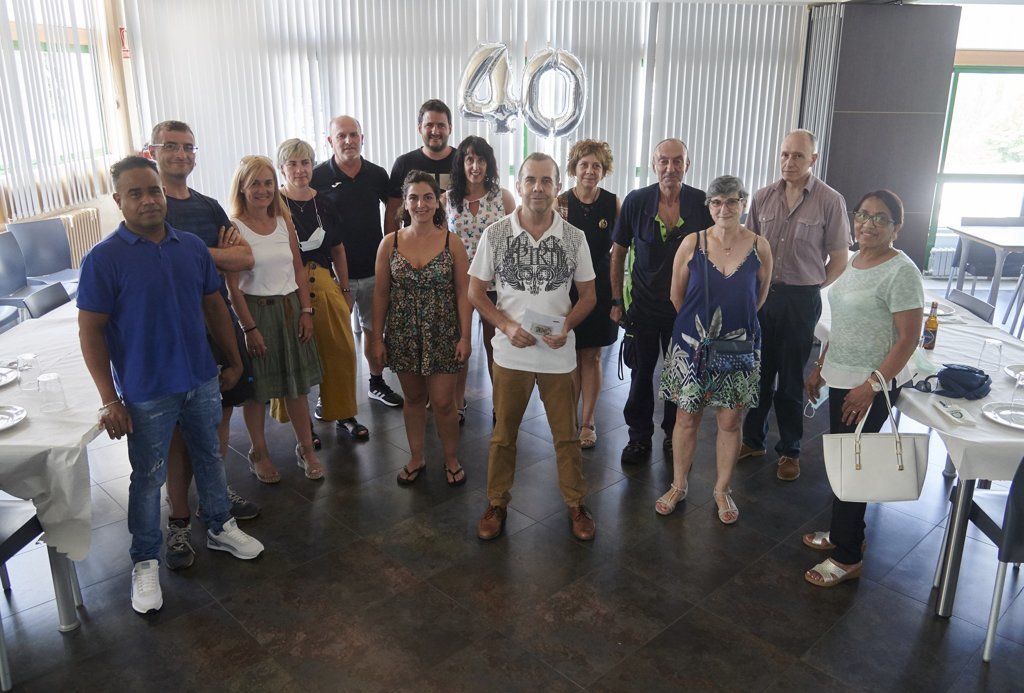 La sociedad homenajeó el miércoles y por sorpresa a este trabajador por sus cuatro décadas de dedicación. Un reconocimiento "en familia" que incluyó regalos y comida en el bar, ahora cerrado: ensalada, txistorra, panceta, costillas de cerdo y sorbete para bajar la animalada. "Ha sido un día especial", comentaba agradecido a sus compañeros. "Estoy orgulloso de trabajar aquí, he visto crecer a la sociedad", reconocía.
