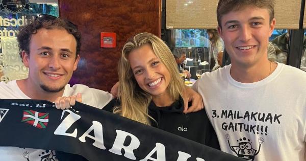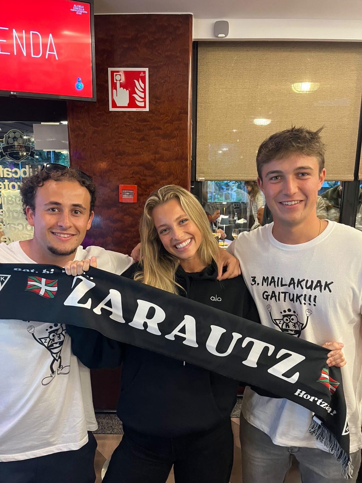 La lusa se encontraba grabando una película en Zumaia este pasado fin de semana, y coincidió su estancia en Zarautz con la celebración del ascenso del equipo tras apear a los bizkainos a penaltis. Algunos aficionados aprovecharon para sacarse una instantánea con la actual pareja de Lando Norris, piloto de Formula 1.