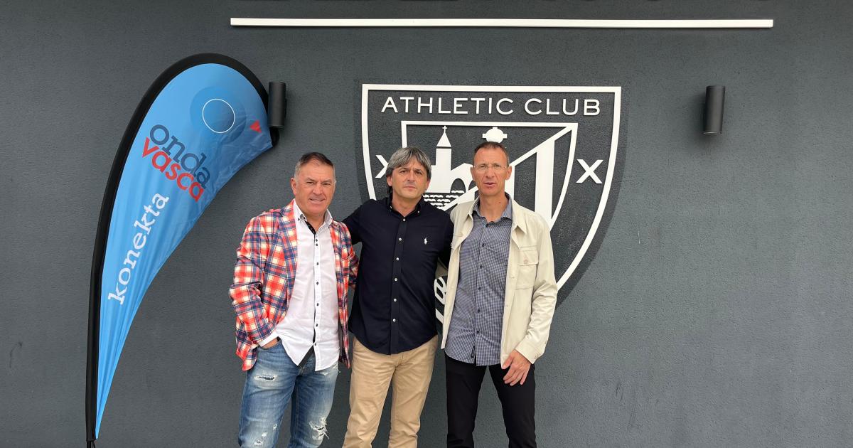 Félix Tainta, José Manuel Monje y Juan Oyaga, hoy en las instalaciones del Athletic en Lezama