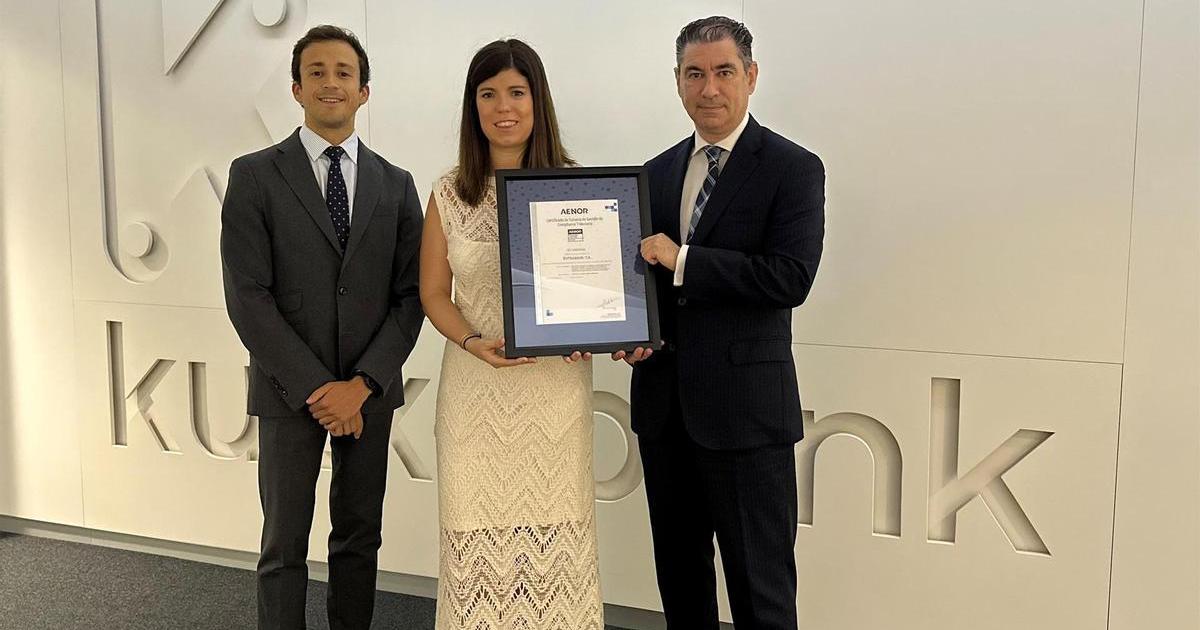 Kutxabank banku erakundeak UNE 19602 arauan oinarritutako Aenor erakundearen ziurtagiria lortu du bere zerga arloko araudia betetzeko sistemarako. Horrela, ziurtagiriak aitortu du bankuaren zergen arloko araudia betetzeko sistemak "arrisku fiskalak prebenitu, detektatu eta arintzeko printzipiorik onenak" barne hartzen dituela, eta "arauaren betekizun zorrotzekin" bat datorrela.