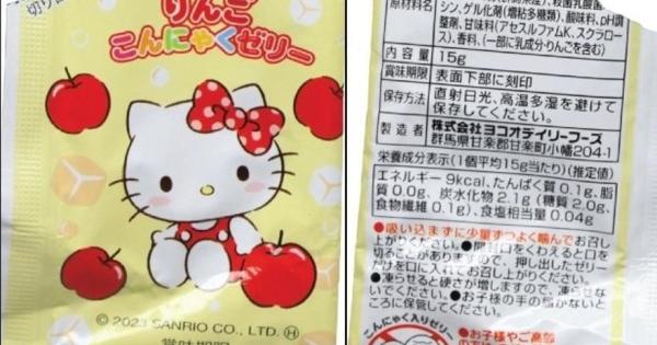 El producto se comercializa bajo el nombre 'Gelatina Hello Kitty de manzana y konjak', de la marca Sanrio, procedente de Japón. El formato es de bolsa de plástico que contiene sobres individuales.