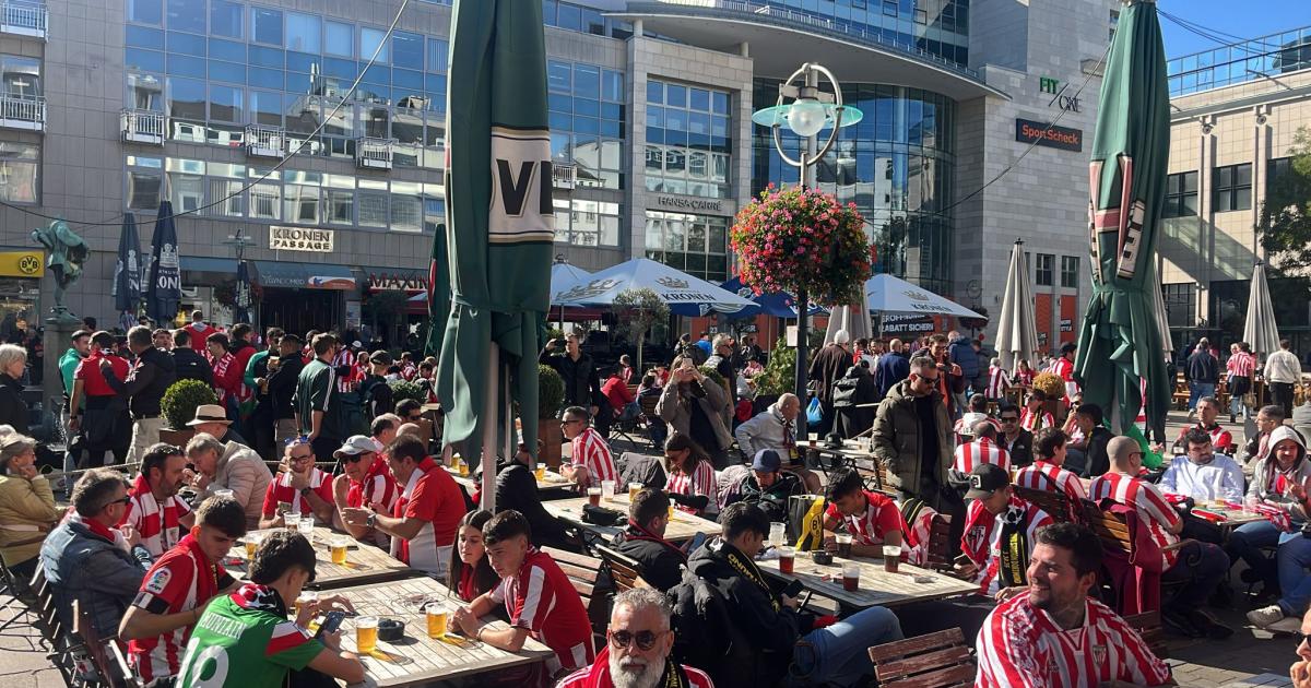 Dortmund ya está completamente abarrotada de aficionados rojiblancos. Desde primera hora de la mañana, cerca de 4000 personas ataviadas con bufandas y camisetas del Athletic han tomado las calles de la localidad alemana para dar colorido zurigorri a la previa del segundo partido de Champions League.