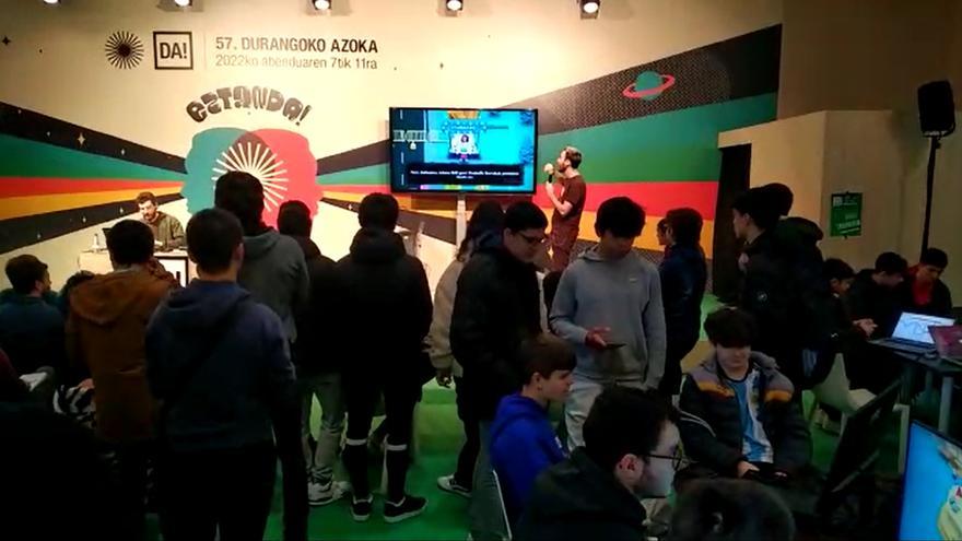 Durangoko Azoka ha hecho un hueco para los videojuegos este viernes. El sector es también parte de la creación cultural y del entretenimiento y además tiene un gran tirón entre los jóvenes y no tan jóvenes. Se ha demostrado por la cantidad de gente que se ha acercado a la Gamer Gela, en la que algunos creadores vascos han compartido un rato con jóvenes que se han acercado a jugar una partida.