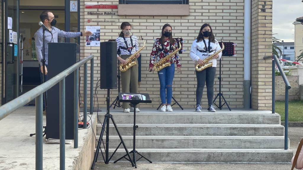 Como el tiempo lo ha permitido el acto ha sido en la calle y allí han estado, entre otros, el alcalde Emilio CigudosaJesús Sola, edil de Cultura, que ha sido el encargado de abrir el turno de discursos y que ha agradecido el tesón de todas las personas que han hecho y hacen posible que el servicio siga acercando la cultura al municipio, mientras que Juanjo Ezquerro, presidente de la asociación Amigos de la Historia de San Adrián, ha afirmado que la biblioteca "es y será un lugar con las puertas abiertas a cualquier persona, joven o mayor, que quiera abrir un libro y convertirse en el protagonista de mil y una historias".