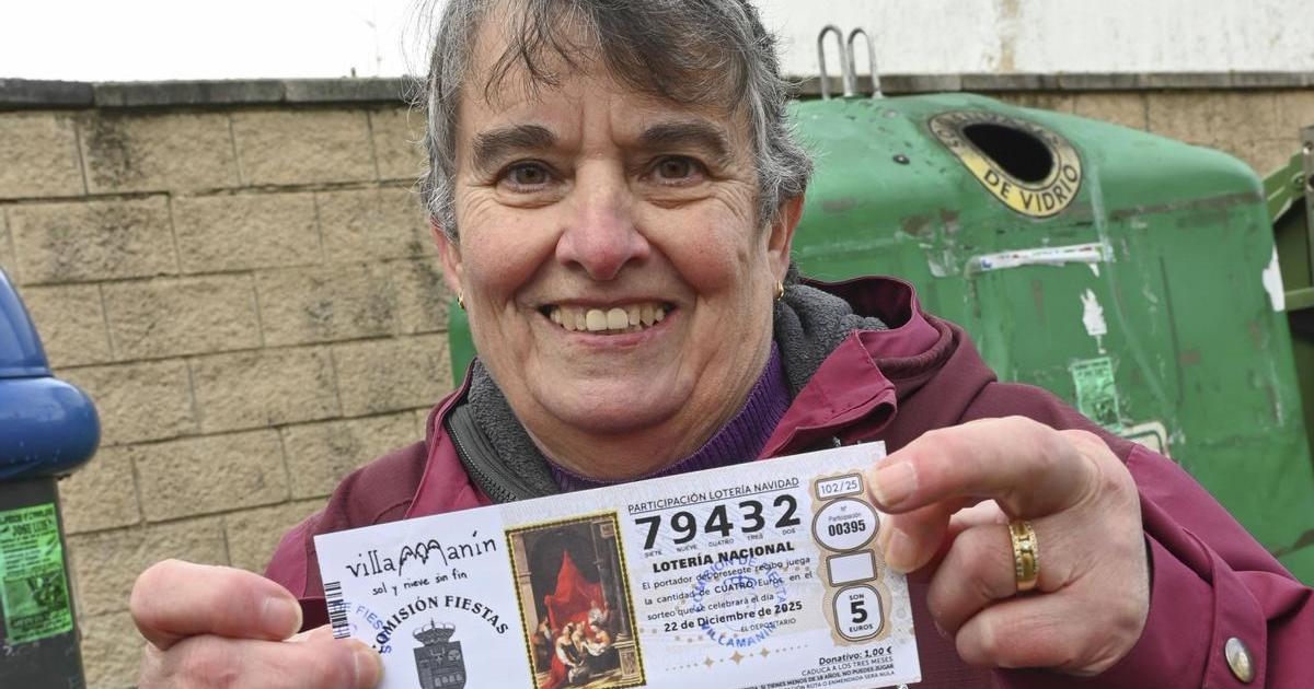 Un vecino de Villamanín muestra el décimo de El Gordo.
