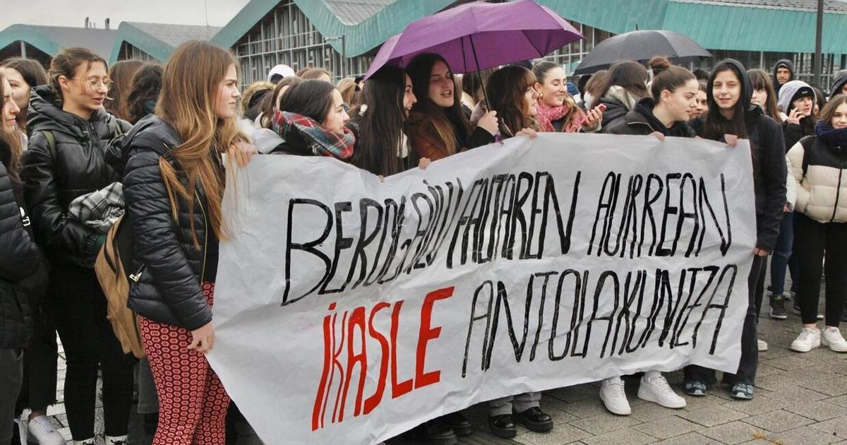 Alumnado y profesorado protestan en el patio de la ikastola y frente al Gobierno Vasco, que defiende que ya ha "reaccionado" al problema