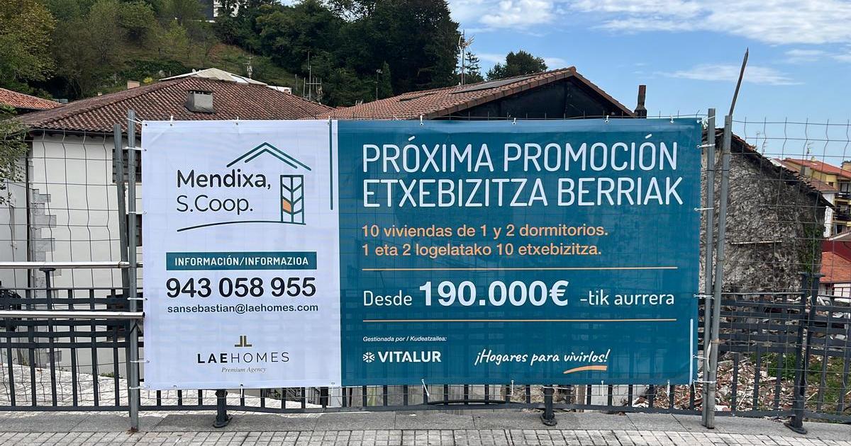 La promoción, que responde al nombre de Mendixa S.Coop., contempla la ejecución de 10 viviendas (nueve de dos dormitorios y una de un dormitorio), con superficies que van desde los 50 m2 hasta los 100 m2 y precios que parten de los 190.000 euros.