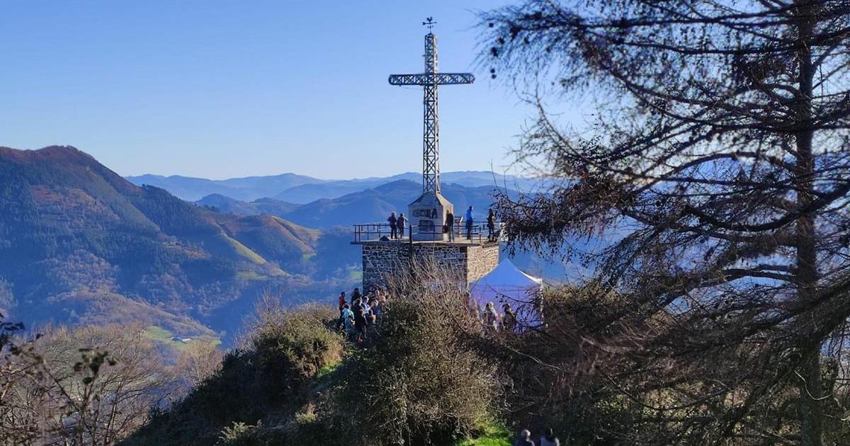 Han pasado 70 años desde entonces, pero la cruz de Irimo se mantiene en muy buen estado. Eso es gracias a Javi Areizaga y sus compañeros de la sección de montaña de la sociedad deportiva Goierri. En julio limpiaron el camino que lleva a Irimo, este mes van a pintar el buzón y la puerta del refugio y el siguiente trabajo será pintar la propia cruz y arreglar la escalera de acceso a ella.