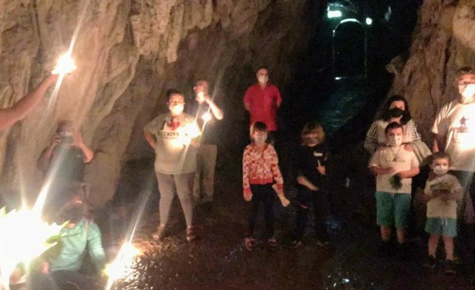 Por segundo año consecutivo, la pandemia estuvo presente y condicionó, en parte, la jornada, aunque discurrió con total normalidad. Eso sí, los responsables de la cueva extremaron las precauciones, sobre todo, a la hora de acceder a la gruta, dispensando gel hidroalcohólico, comprobando que todo el mundo llevara la máscara, y limitando el número de personas por grupo en las visitas. Por lo demás, se puede decir que fue un día de sol y sombra. El sol no quiso perderse la jornada y estuvo presente en la superficie, mientras la sombra fue la encargada de repartir frescura bajo tierra.