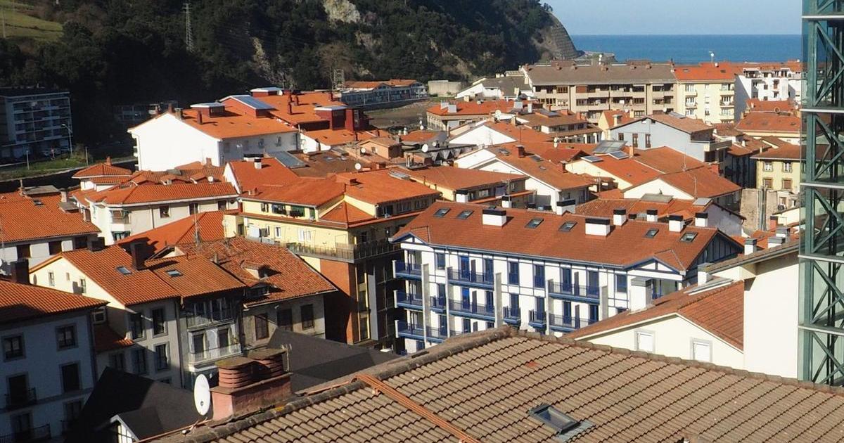 Vista de las viviendas del casco urbano de Deba desde la zona alta de la localidad.