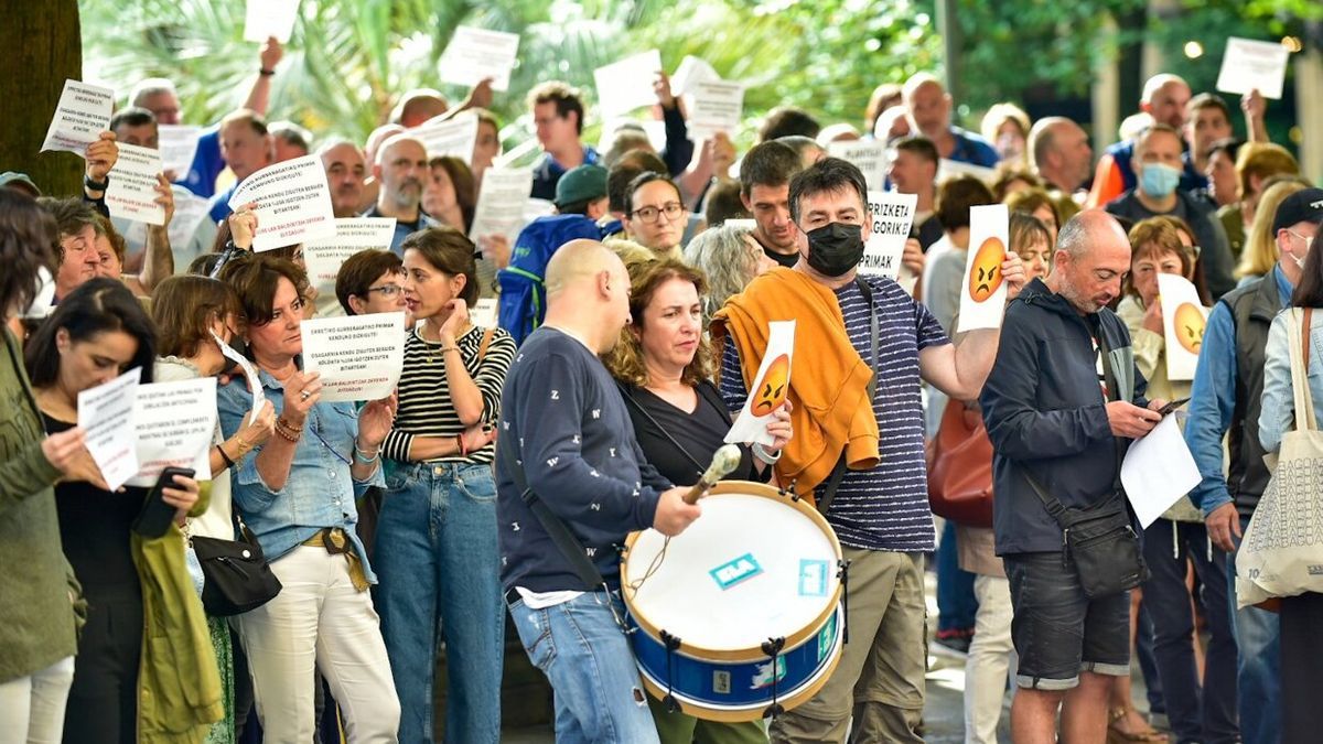 Minutos antes de que comenzara el Consejo de Gobierno, alrededor de 300 funcionarios de la Diputación, a los que se ha sumado también personal público del Ayuntamiento de Donostia, han mostrado su malestar a las puertas del Palacio foral. Al contrario que la pasada semana, cuando los funcionarios tomaron la planta noble del edificio de Hacienda, en el barrio donostiarra de Errotaburu, esta vez la protesta se ha llevado a cabo sin incidentes.
