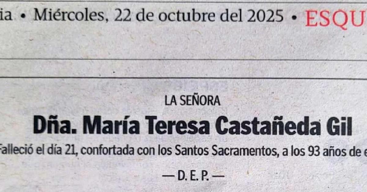 La esquela despedía a María Teresa Castañeda Gil, fallecida el 21 de octubre con 93 años, una señora anónima pero que ha caído muy bien a miles de internautas, que se imaginan a la anciana como una persona muy entrañable. ¿Por qué? Por lo que se puede leer.