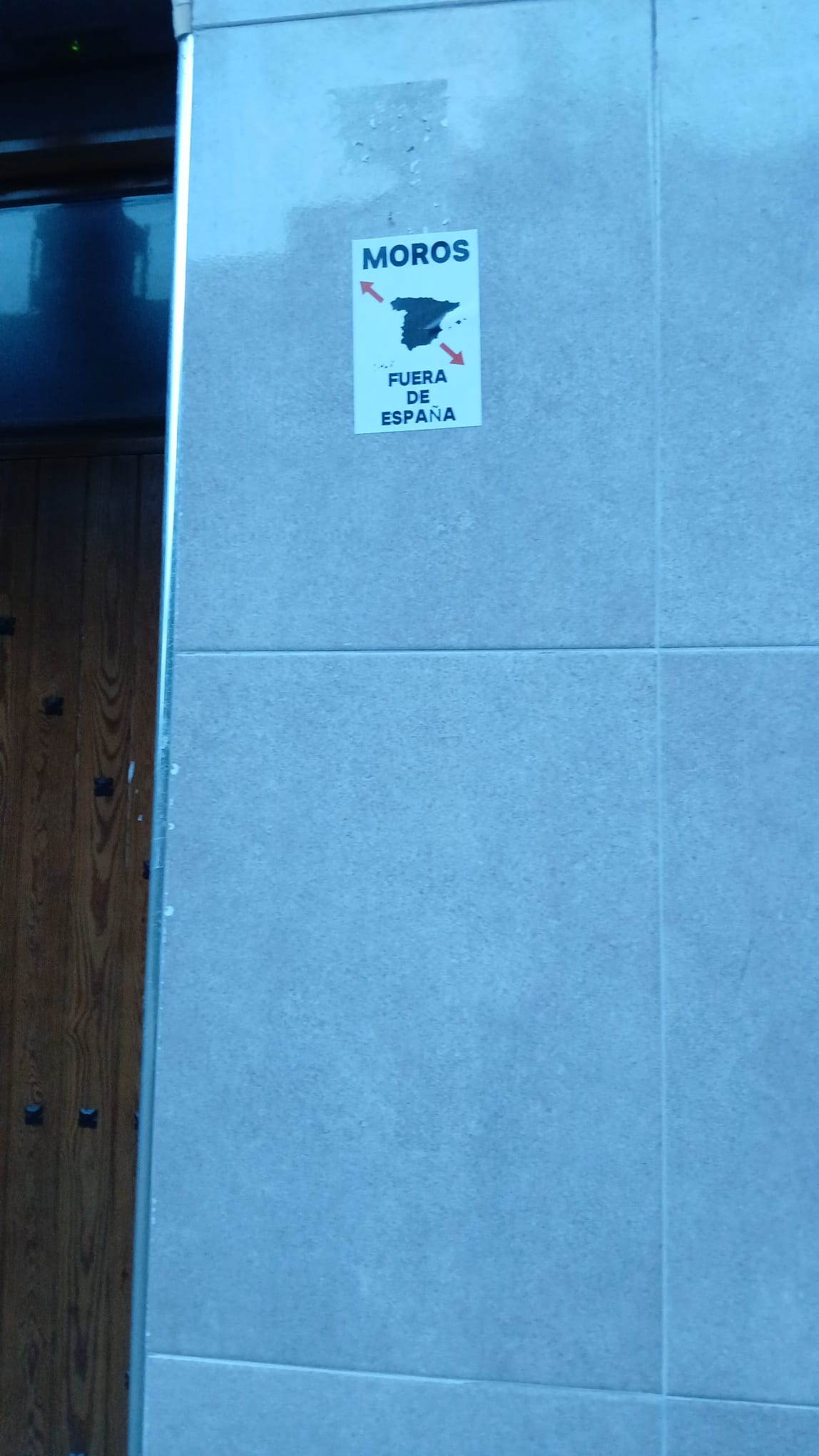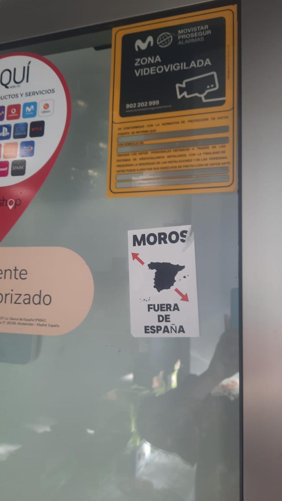La Ertzaintza investiga la aparición de varias pegatinas con "contextos xenófobos" que han aparecido en varios puntos frecuentados por la comunidad magrebí en Gasteiz. 'Moros fuera de España', reza la pegatina con la bandera de España y unas flechas hacia fuera, muy similar al mensaje que se utilizaba para reclamar el acercamiento de los presos de ETA.