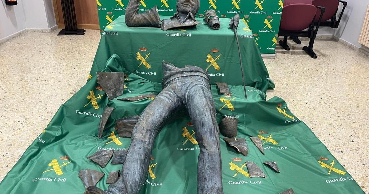 Fue el propio Ayuntamiento quien informó de la desaparición de la estatua en sus redes sociales. La Guardia Civil y la Policía Local iniciaron una investigación que ha conllevado la aparición de la obra en varios trozos --aunque el tren inferior del cuerpo está completo y la cabeza entera--, además de la detención de un joven de 22 años y vecino de La Albericia, barrio donde se encontró la pieza en un trastero.