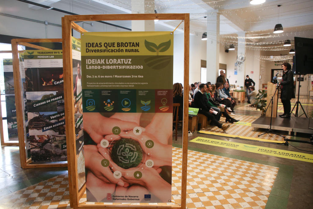 La consejera de Desarrollo Rural y Medio Ambiente, Itziar Gómez, ha inaugurado este mediodía la exposición 'Ideas que brotan' a iniciativa del departamento, sobre diversificación en el sector primario que muestra diferentes casos de emprendimiento en el entorno rural de Navarra.