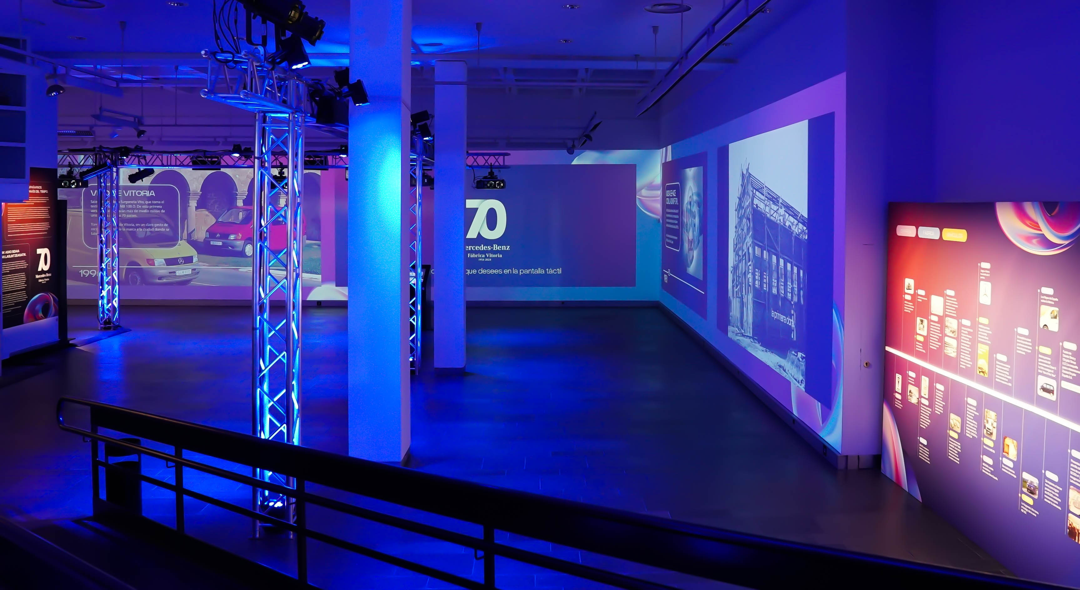 El recorrido comienza con una línea temporal que resalta los momentos clave de los 70 años de Mercedes-Benz Vitoria, seguida de un mural audiovisual que invita a los asistentes a explorar las primeras décadas de la planta. Esta sección captura el crecimiento inicial y la creciente popularidad de los vehículos producidos, ofreciendo una visión nostálgica de los comienzos de la fábrica.