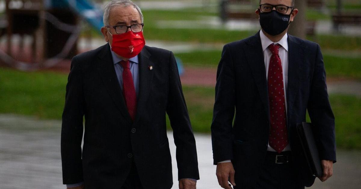 Luis Sabalza, acompañado del abogado Luis Sarrato, a su llegada al Palacio de Justicia para un juicio por delitos de Hacienda.