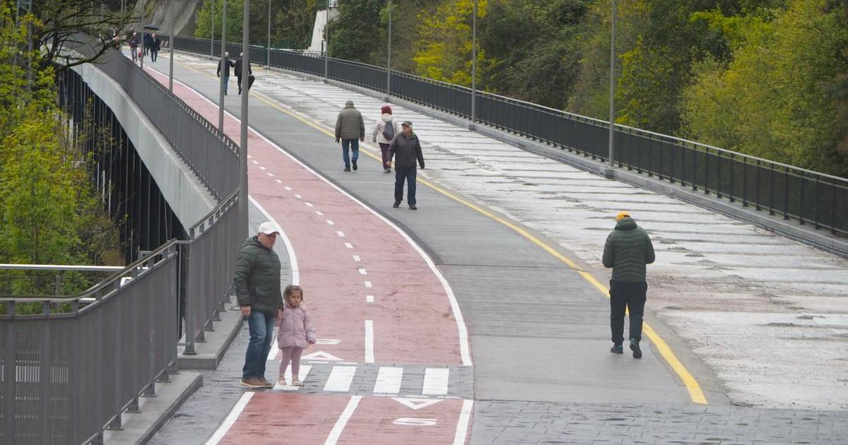 Las primeras horas de uso del paseo sobre las líneas del ferrocarril en Eibar, tras su apertura en la jornada de hoy, miércoles, 1 de abril, se han visto acompañadas del comunicado crítico de la asociación vecinal No al paseo que nos entierra-Ekialdea Bai.