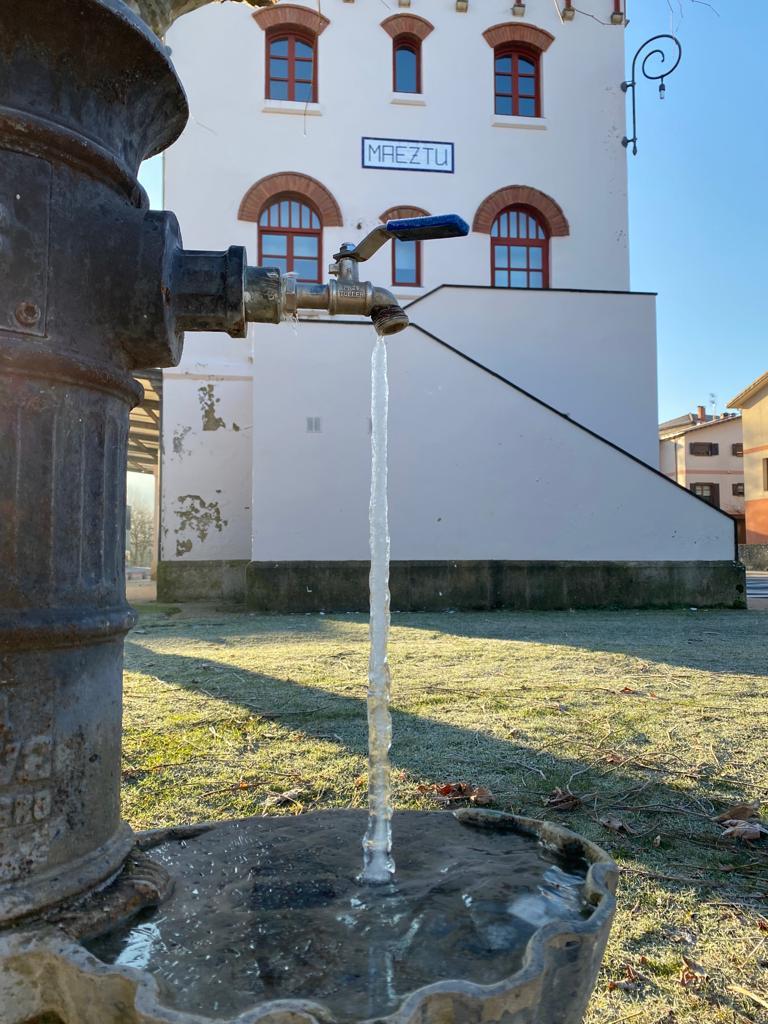 En Maeztu, por ejemplo, sus vecinos sufrieron ayer temperaturas de 4,5 grados bajo cero a las 9.30 horas. Una fotografía, publicada por la Asociación de Concejos de Álava (ACOA), muestra perfectamente cómo el chorro de agua de la fuente cercana a la Casa Consistorial se encontraba por la mañana totalmente congelado.